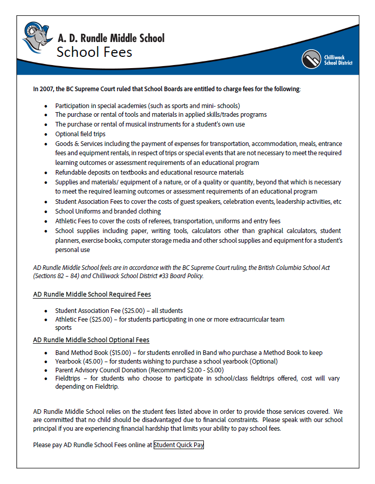 Click the link below to read how to use Student QuickPay to pay for your child's Student Fees, Field Trip Forms, Purchase optional items, etc.
